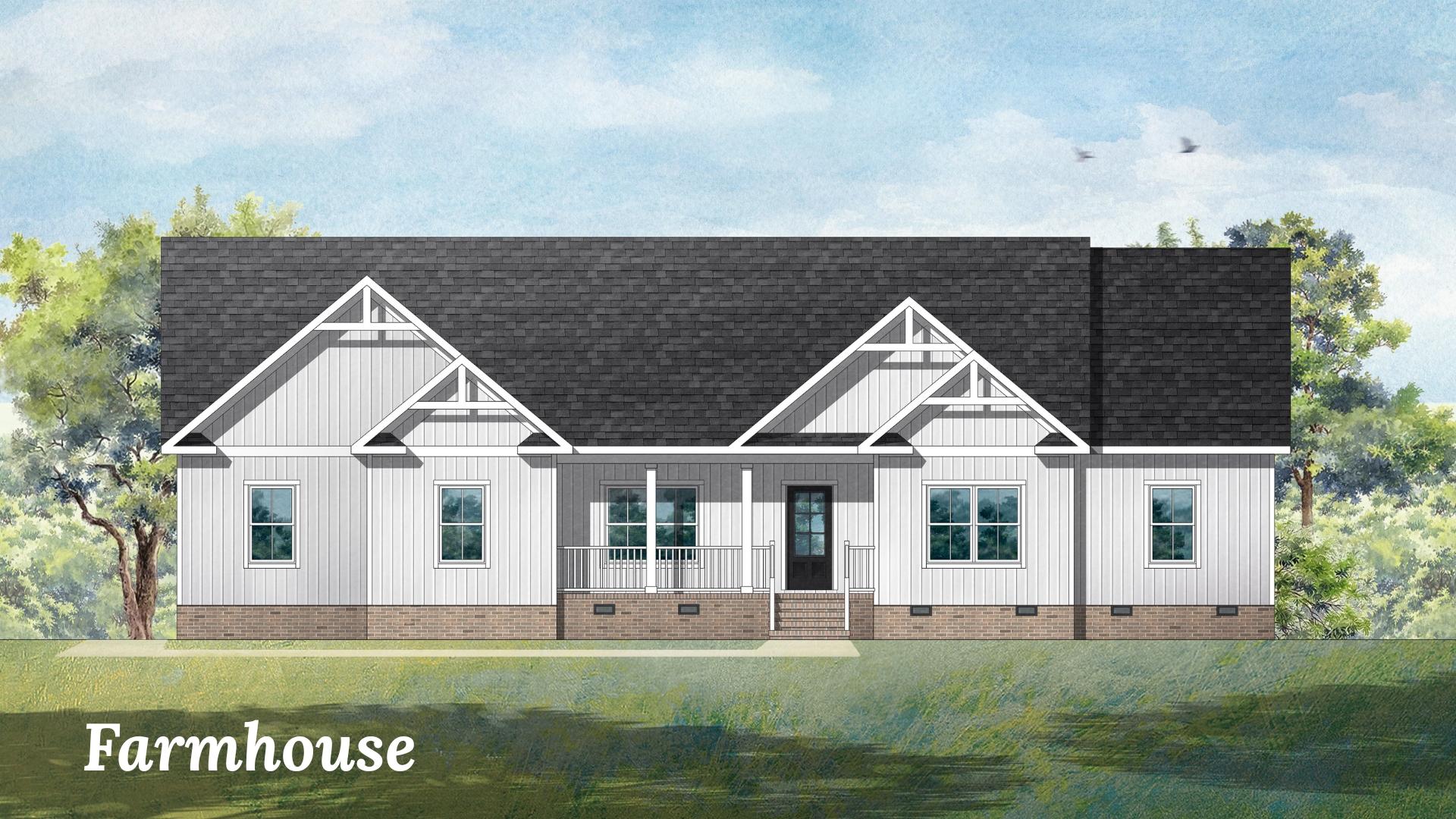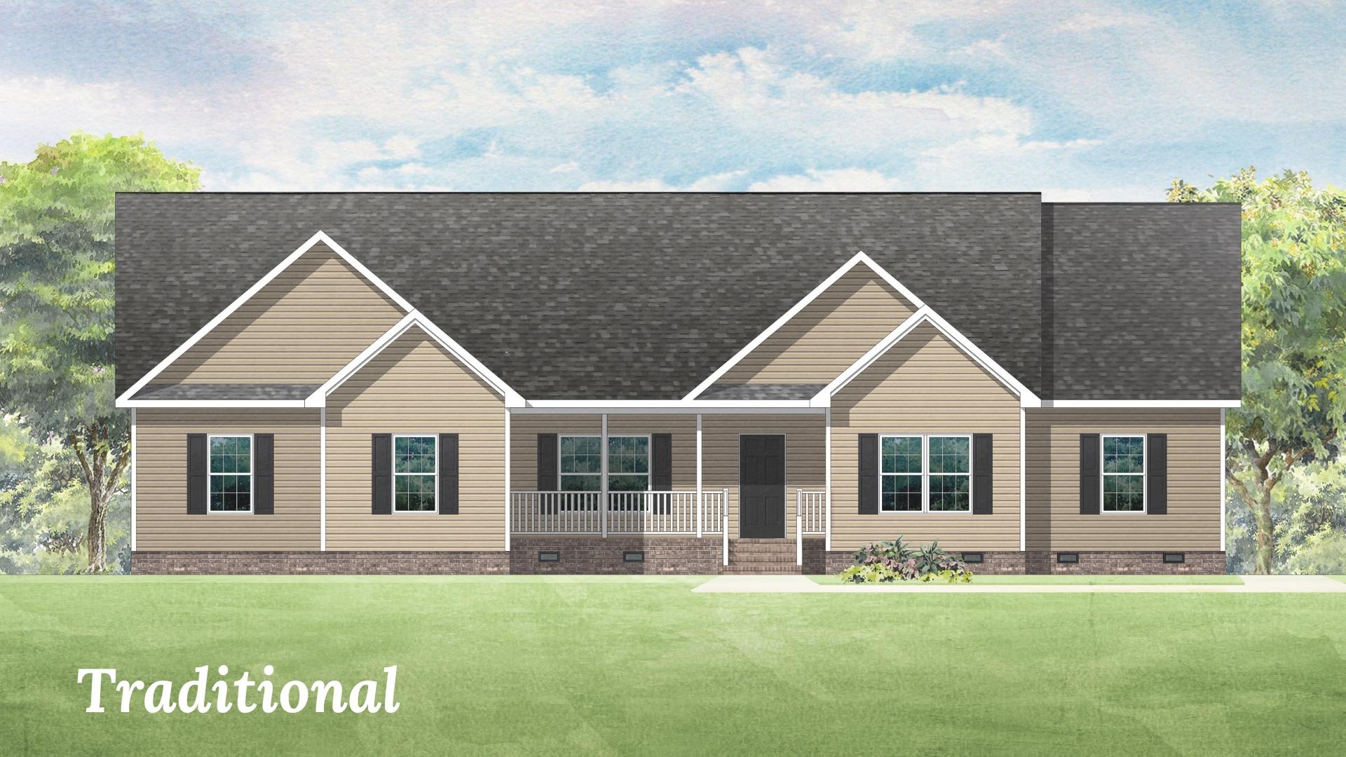 The Albemarle model is a one-story ranch-style home featuring 3 bedrooms and 2.5 baths with a garage. The home also features a large kitchen with a convenient island that flows into an attached breakfast area. A living room is located off the foyer, which some customers have converted to an office space and a separate dining room round out the plan. Some customers have taken out the dining room walls to create a more open layout; others have used columns instead of walls to separate the spaces. We also offer a 4 bedroom, 3 bath model of this plan.