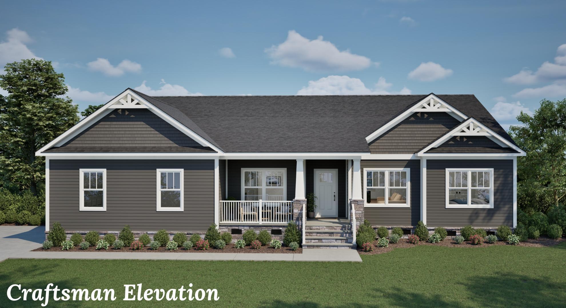 A ranch-style, one-story home, the Concord features 3 bedrooms, 2.5 baths and a garage. This is our most popular and adaptable home and you can easily see why. Take in the generous master bedroom with a spacious master bathroom attached. You’ll also find an open floor plan in the common areas of the home with a seamless transition from the kitchen and breakfast room into the family room. This house plan also offers a flex space you could turn into an office, workout room, or playroom. This plan comes in 3 different elevation to choose from- The Craftsman, The Farmhouse, and The Traditional. It is no wonder so many customers love the Concord!